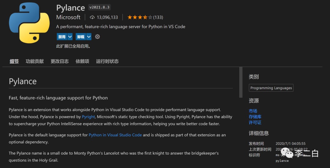 pylance 插件:你用的着的功能有Docstrings;参数提示;自动导入;代码补全;代码诊断;引用和跳转;代码大纲;类型检查;支持多工作区;带有类型信息的签名帮助;兼容IntelliCode和Jupyter notebook等等这么多