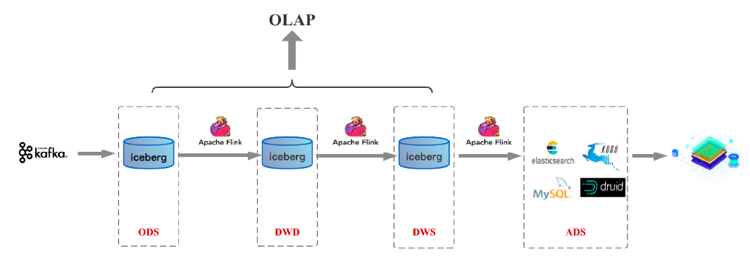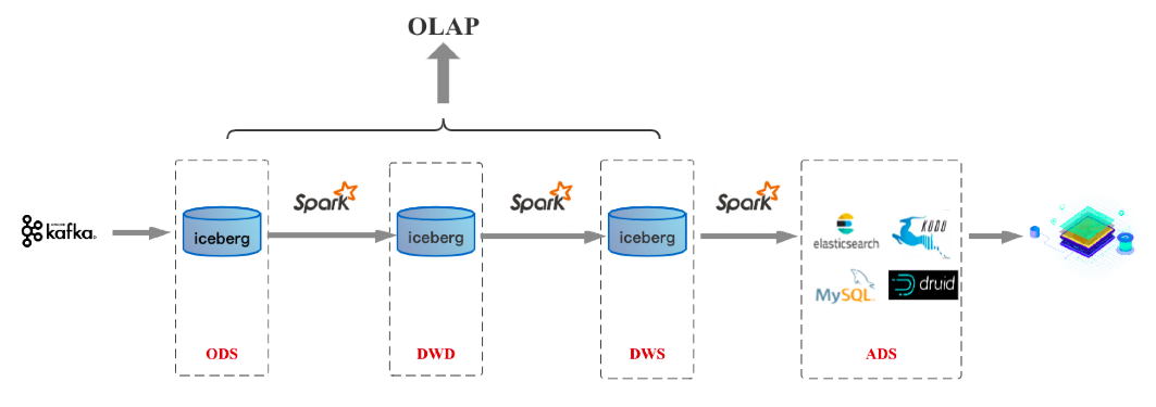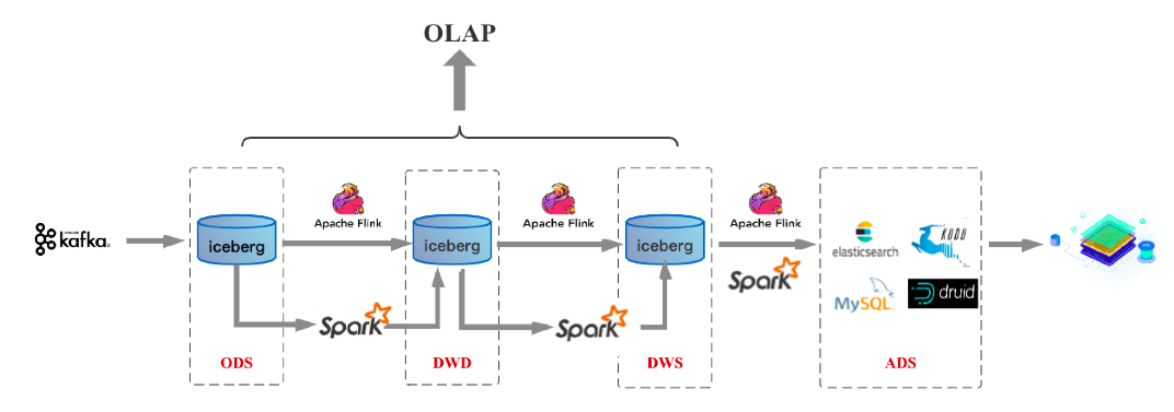 (2)DW层数据依然可以支持OLAP查询。同样数据湖基于HDFS之上实现,只需要当前的OLAP查询引擎做一些适配就可以进行OLAP查询。