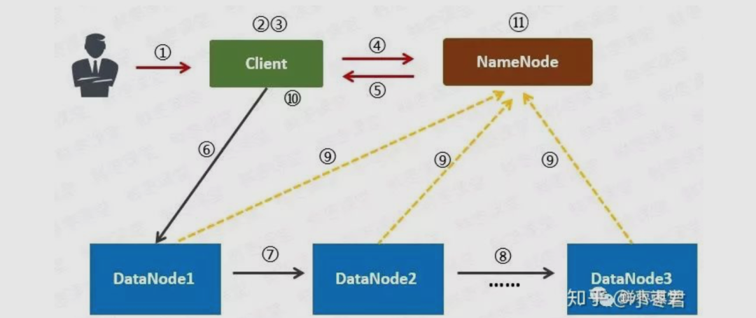 NameNode将给Client这个文件的块列表,以及存储各个块的数据节点清单(按照和客户端的距离排序)。