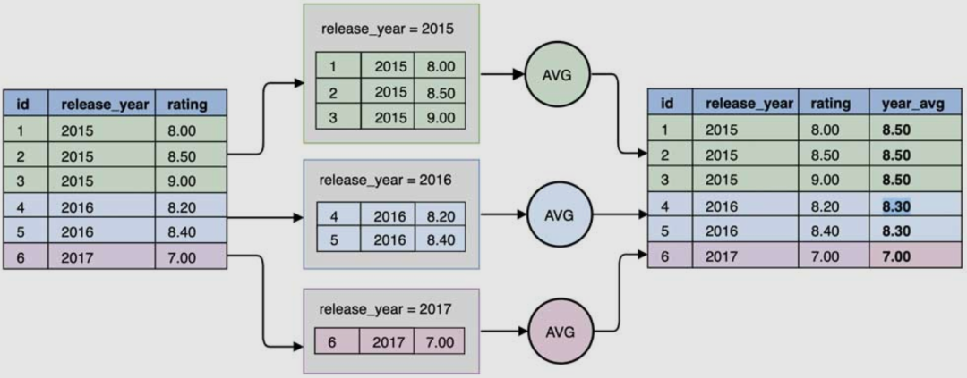 xxx() over(PARTITION by yyy ORDER by zzz)