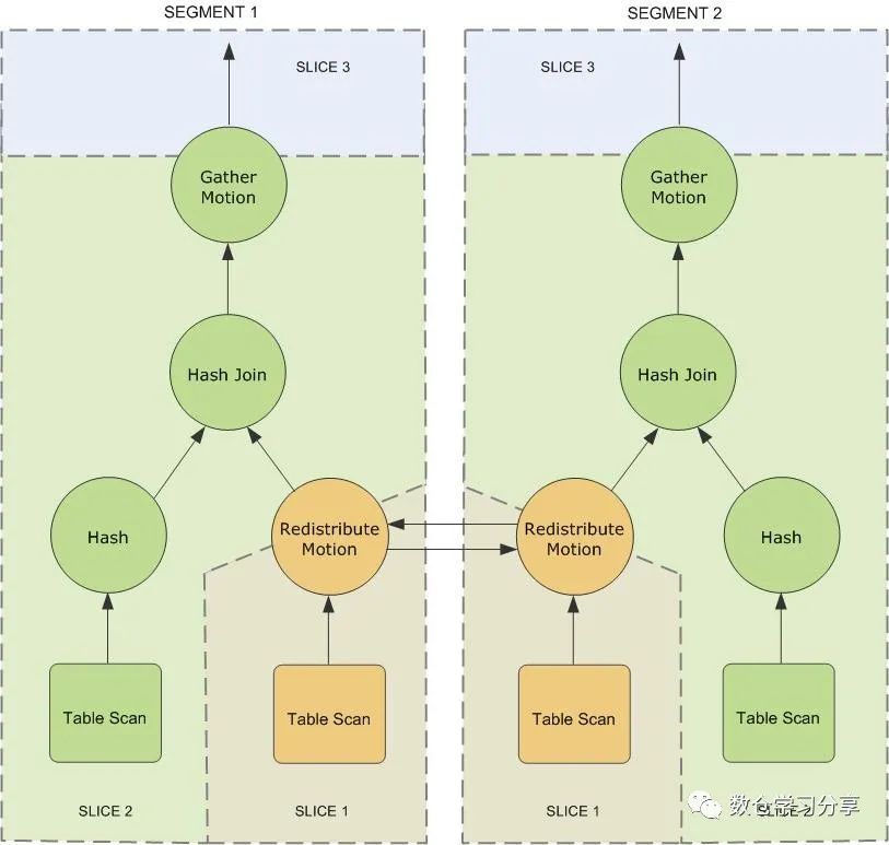 为了在查询执行过程中获得最大的并行度,Greenplum将查询计划的工作划分为多个片。切片是计划的一部分,各部分可以独立工作。在计划中发生移动操作的地方,查询计划就会被切片,每一边都有一个切片。
