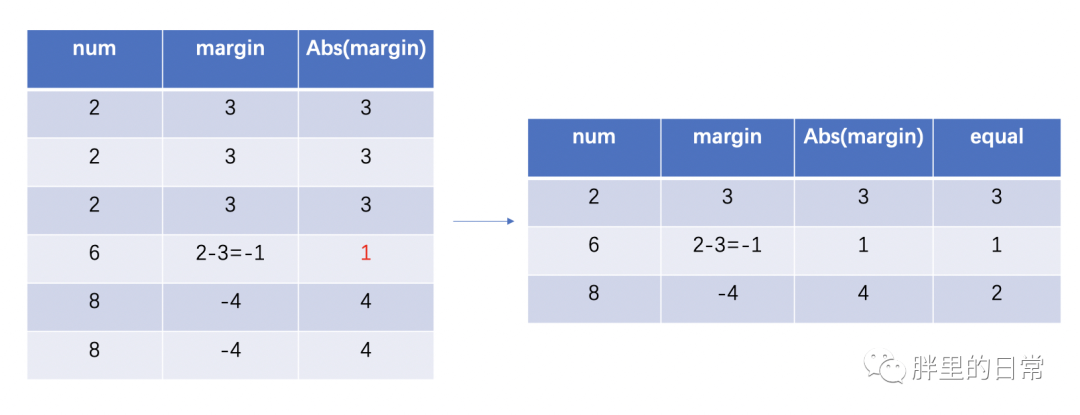 有这么一组数据:1,2,3,4,5,6。按照刚刚描述,对它们分别求取一个加和结果margin和margin的绝对值。