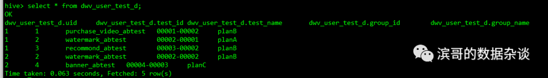 用户实验表是dwv_user_test_d,有用户,实验id和名称,分组id和名称等信息。