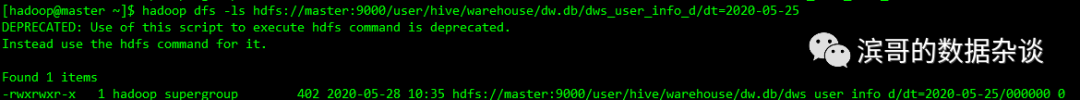 hadoop dfs -ls hdfs://master:9000/user/hive/warehouse/dw.db/dws_user_info_d/dt=2020-05-25