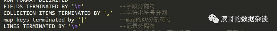 MAP KEYS TERMINATED BY ':' --map K-V对分割符号