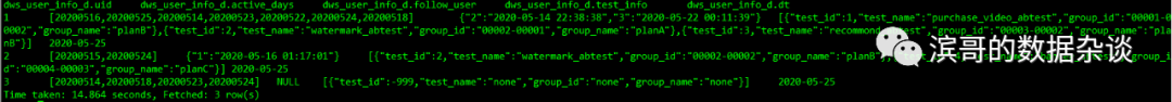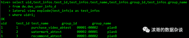 实验表存储的是用户归属于某个实验的某个分组,1个用户可能同时会有多个实验,而对于实验组之间,用户实验信息是固定的,可以使用struct来存储每个实验的具体信息,嵌套array<struct>来存储多个实验的信息,形成类似表中表的数据存储。
