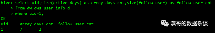 select uid,size(active_days) asarray_days_cnt,size(follow_user) as follow_user_cnt