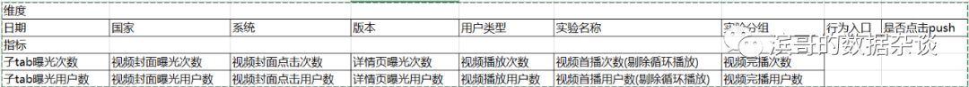 需求有9个维度,报表是每天统计,日期等于统计周期,常量,可以不考虑,剩下还有8个维度(国家、系统、版本、用户类型、实验名称、实验分组、行为入口、是否点击push)。