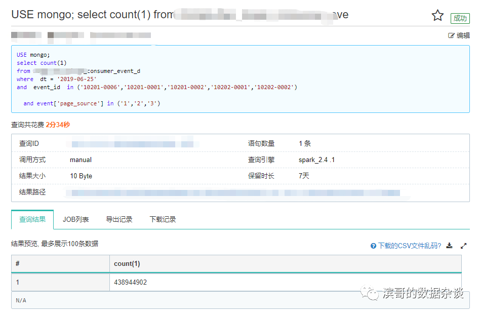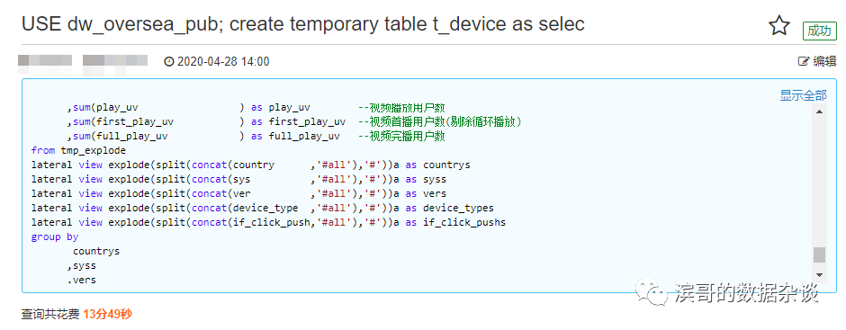 Lateral view explode写法执行时间2小时10分钟,相比group bywithcube写法提升一倍,但是2小时还是比较长。SQL执行记录如下所示: