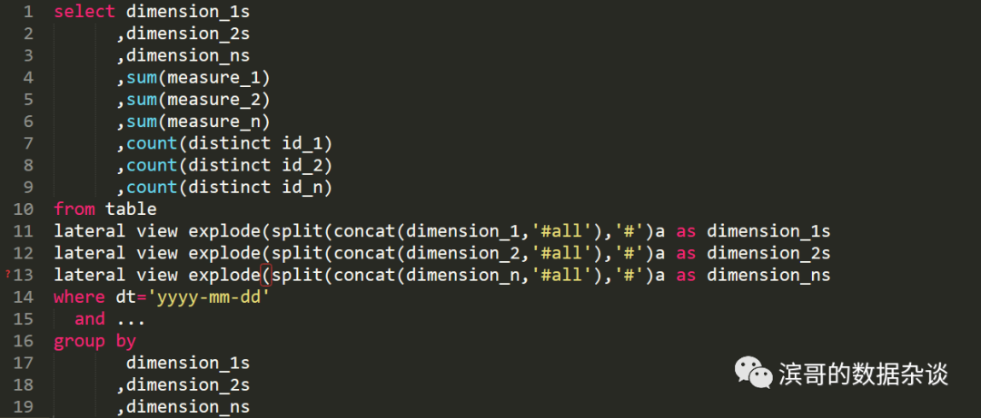 现实遇到的2个问题:1、参照kylin的做法使用逐层叠加的方式会遇到去重的问题,由于kylin有bitmap实现精准去重,应该如何处理不同层的去重问题;2、由于8个层次,如果逐层叠加,SQL会非常长,可读性也是要考虑的问题。