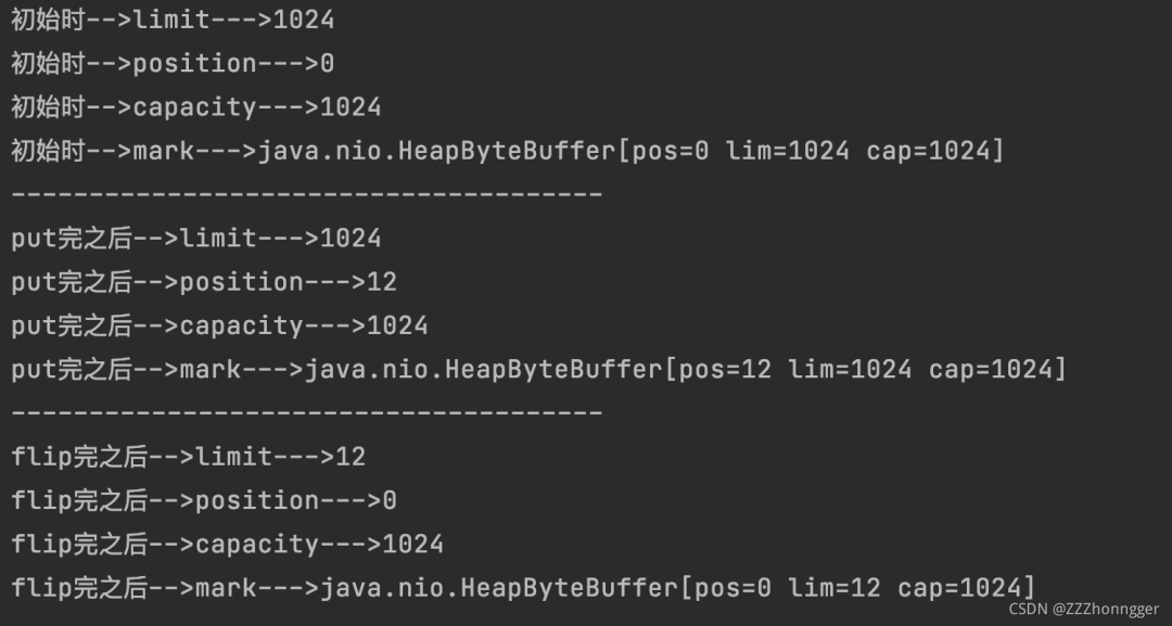 System.out.println("初始时-->position--->" + byteBuffer.position());