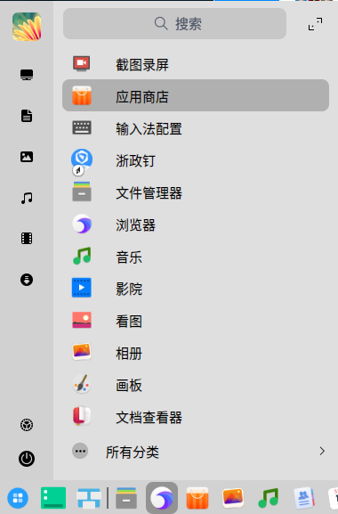 第一步,可点击桌面左下角第一个图标,在搜索框内查找商店。UOS系统是应用商店,麒麟系统是软件商店。