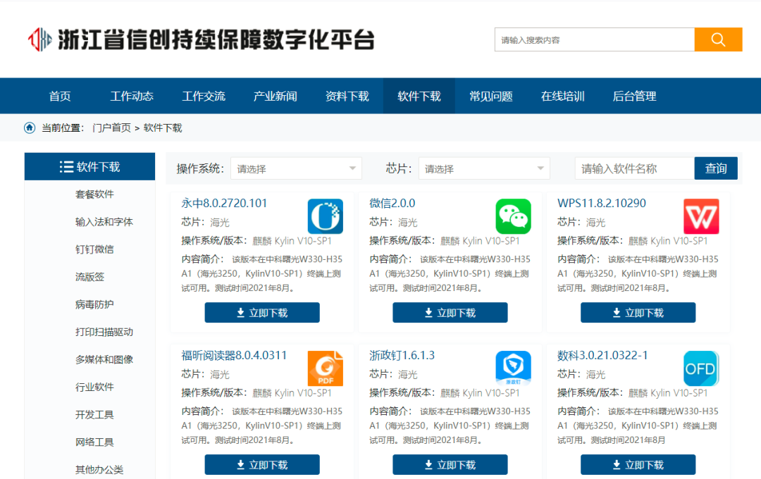 为了大家更好的使用国产电脑,浙江省信创持续保障数字化平台也提供了常用软件的下载渠道,网址如下: