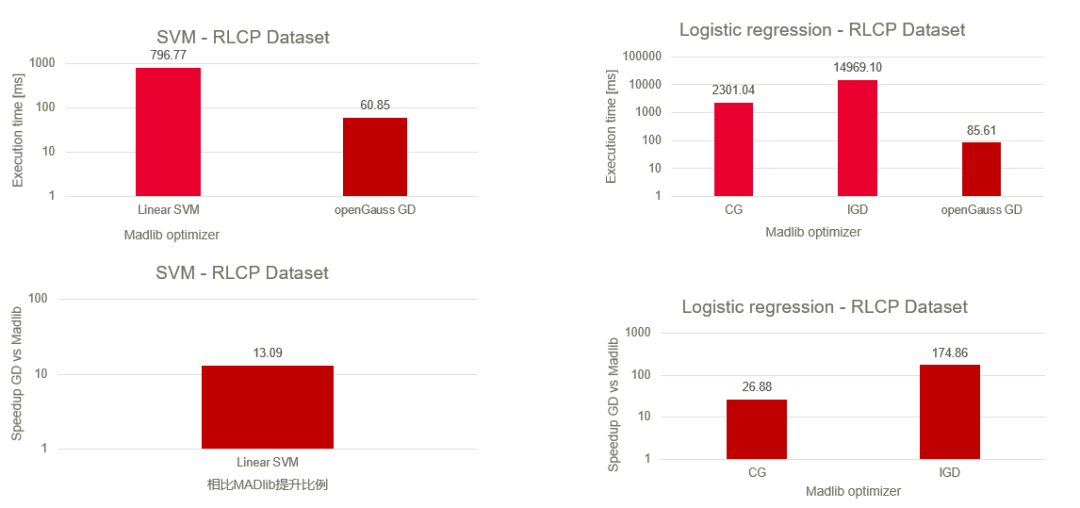 相比于目前很多的AIinDB项目,openGauss的特性通过添加AI算子的方式将模型计算内置到数据库中。以算法训练为例,其中的数据的读取、模型的计算更新和最终的模型保存将在数据库的执行器中完成。这种方式将更加充分地利用和释放数据库的计算能力。深入内核的技术路线使得我们的特性在计算速度上优于其他更高层级调用的方法。