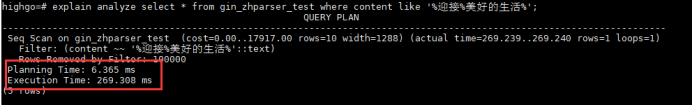 explain analyze select * from gin_zhparser_test where content like '%迎接%美好生活%';