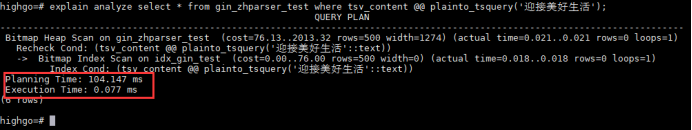 explain analyze select * from gin_zhparser_test where tsv_content @@ plainto_tsquery('迎接美好生活');