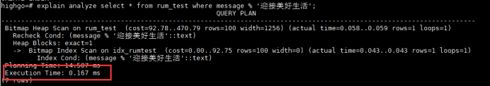 explain analyze select * from rum_test where message % '迎接美好生活';