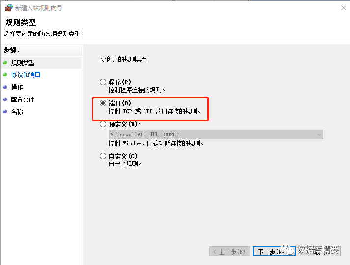 第五步:选择TCP,然后特定本地端口,输入sqlserver的访问端口1433.
