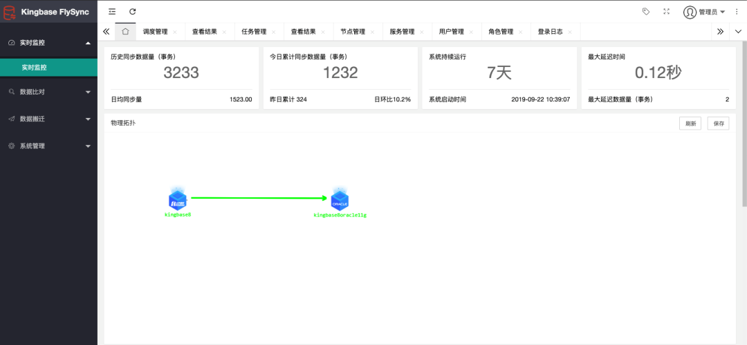 6、提供图形化状态监控,便于用户实时查看同步的节点和链路状态以及数据量统计。