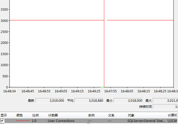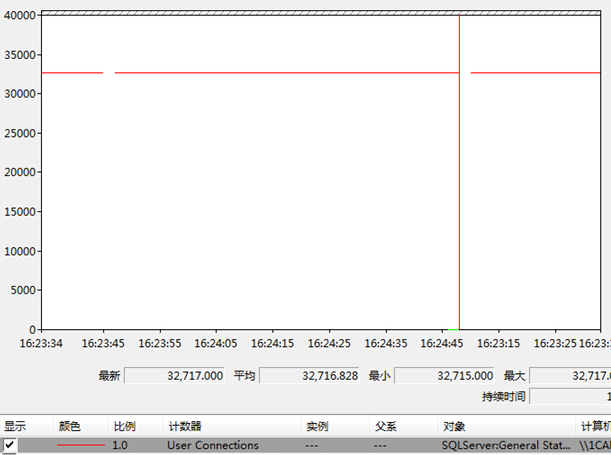 以上监控可以看到,MSSL 连接峰值为32717,加上数据库系统自己默认占有的50个连接,总数为32767,即为数据库的最大连接数。在连接过程中,CPU和内存开销很大!