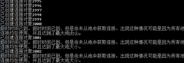 客户端连接池最大连接为3000,再新建连接时,会因超时不能添加到连接池中,结果失败!