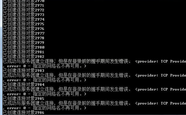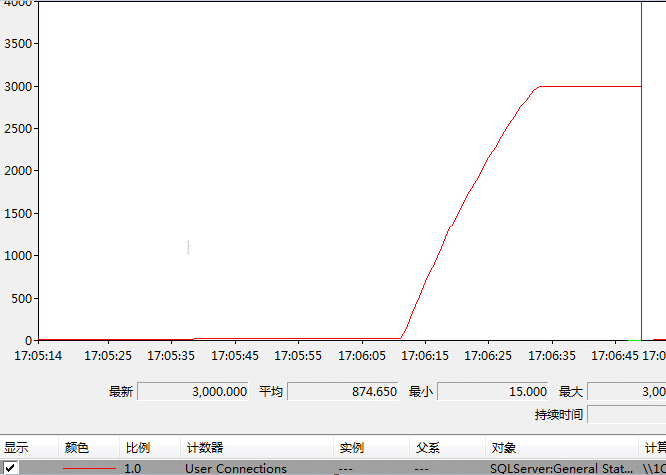 设置max poolsize=4000,即连接池4000,MSSQL 连接限制0(32767)。循环次数:4000