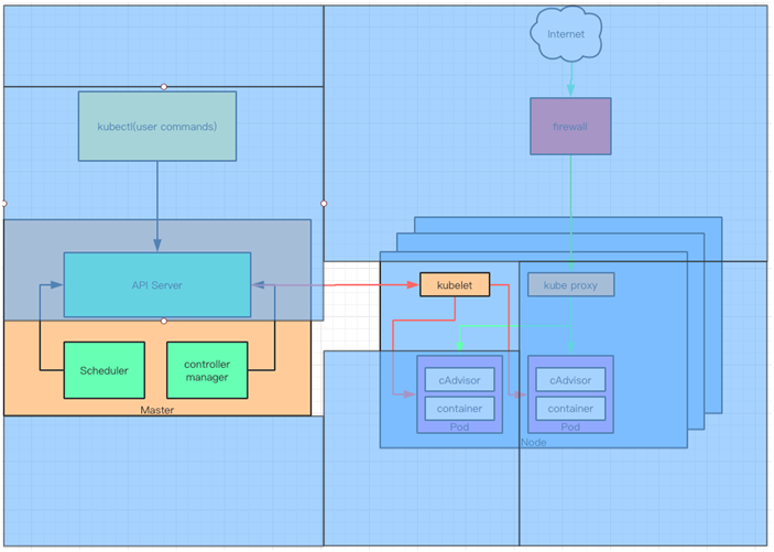 经历上面一系列的过程,终于将 Pod 和容器部署到 Node 上了。