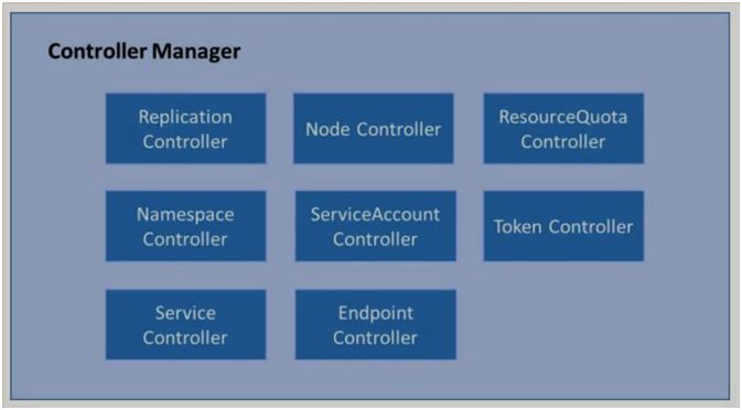 Controller Manager 就是这个管理者,或者说是控制者。它包括 8 个 Controller,分别对应着副本,节点,资源,命名空间,服务等等。