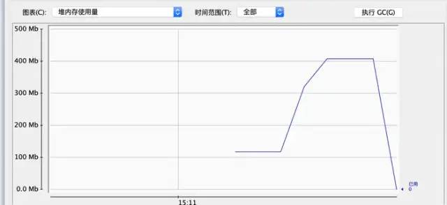 上面我们已经算出来了一个Animal对象占用16个字节,所以两千万个占用大概是305MB,和集合加起来就是将近380MB的空间大小,接下来我们就启动程序来看一下我们结果是不是对的呢,接下来我用的jconsole工具查看内存占用情况。