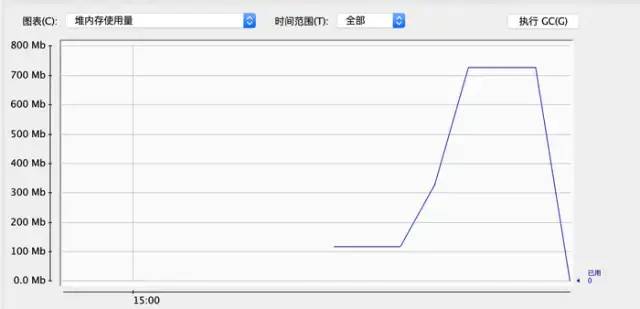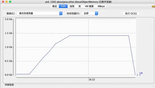 注意这里我是直接将集合的大小初始化为了二千万的大小,所以程序在正常启动的时候占用内存是100+MB,正常程序启动仅仅占用30+MB的,所以多出来的60+MB正好是我们初始化的数组的大小。至于为什么要初始化大小的原因就是为了消除集合在扩容时对我们观察结果的影响