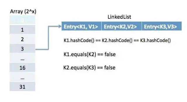 static class Node<K,V> implements Map.Entry<K,V> {final int hash;final K key;V value;Node<K,V> next;}