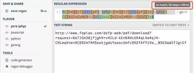 匹配到 com/dzfp-web/pdf/download?request=6e7JGm38jf.....,你会发现因为贪婪匹配的原因,所以程序会一直读后面的字符串进行匹配,最后发现没有点号,于是就一个个字符回溯回去了。