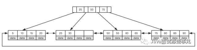 一种行之有效的解决方法是减少树的深度,将二叉树变为m叉树(多路搜索树),而 B+Tree就是一种多路搜索树。理解 B+Tree时,只需要理解其最重要的两个特征即可:第一,所有的关键字(可以理解为数据)都存储在叶子节点( LeafPage),非叶子节点( IndexPage)并不存储真正的数据,所有记录节点都是按键值大小顺序存放在同一层叶子节点上。其次,所有的叶子节点由指针连接。如下图为高度为2的简化了的 B+Tree。