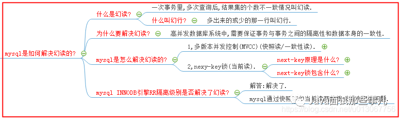 幻读的例子非常的清楚,为了高并发数据库系统中,保证事务与事务之间隔离性和数据一致性,mysql innodb引擎默认是RR的隔离级别,在mysql中通过MVCC快照读和next-key(当前读)两种模式解决幻读问题。