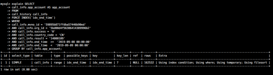 后面应该加上 order by null;避免无用排序,但其实对结果耗时影响不大,还是很慢。思路二: