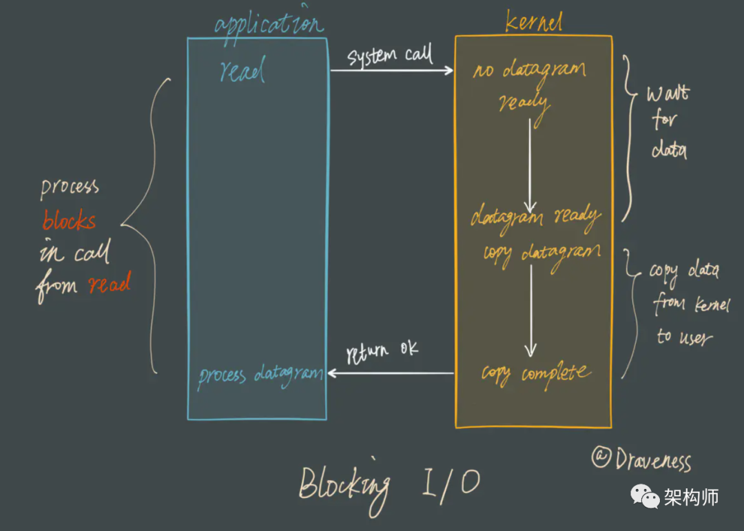 这也就是传统意义上的,也就是我们在编程中使用最多的阻塞模型: