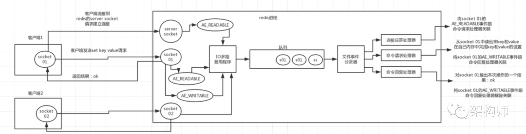 如果是客户端要写数据到redis,那么会为 Socket 关联命令请求处理器。