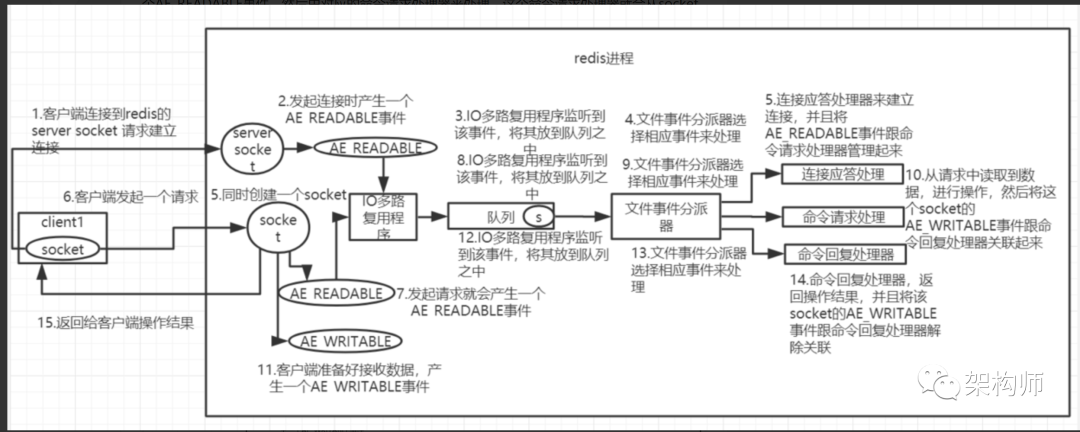 如果是客户端要从redis读数据,那么会为 Socket 关联命令回复处理器。