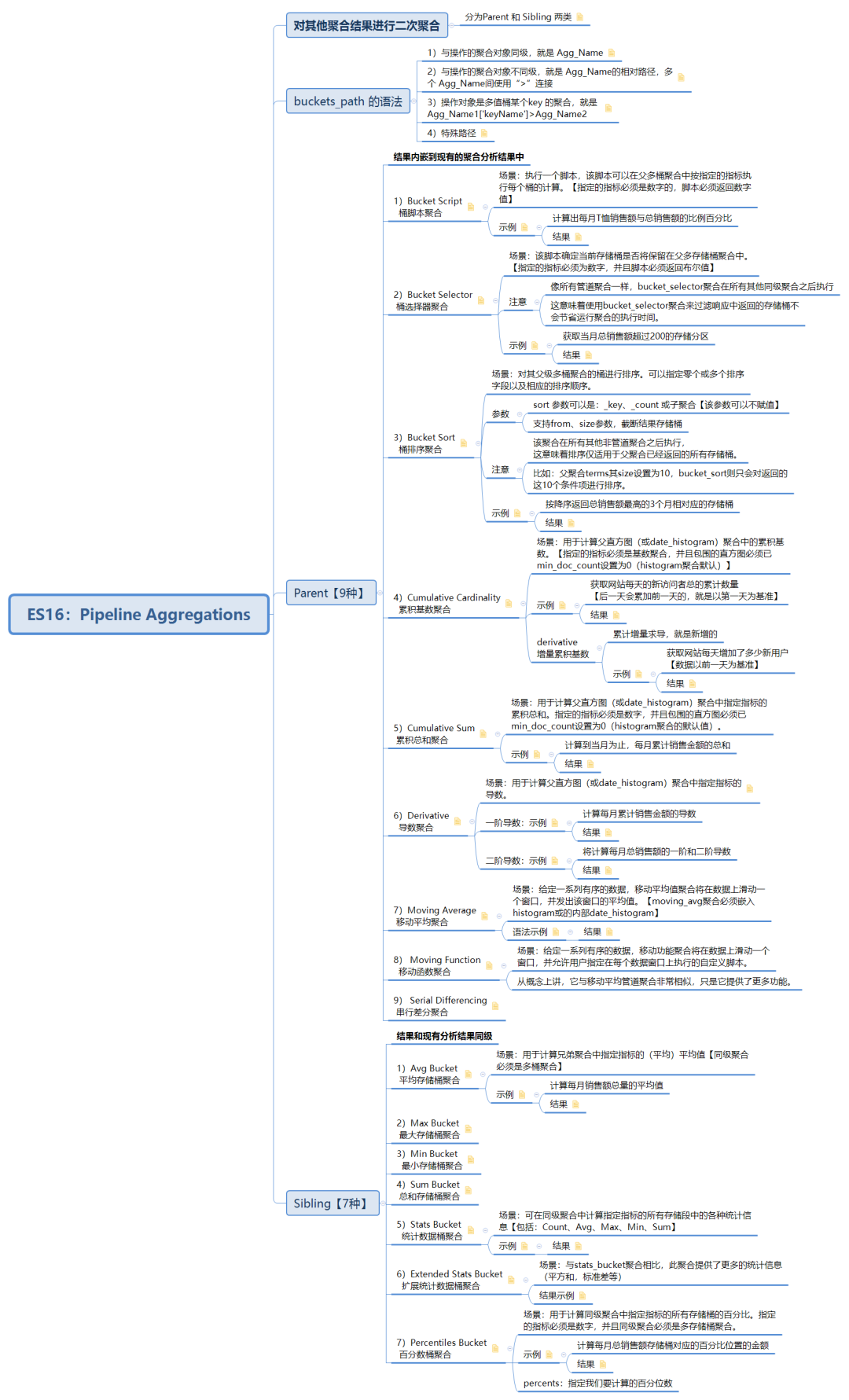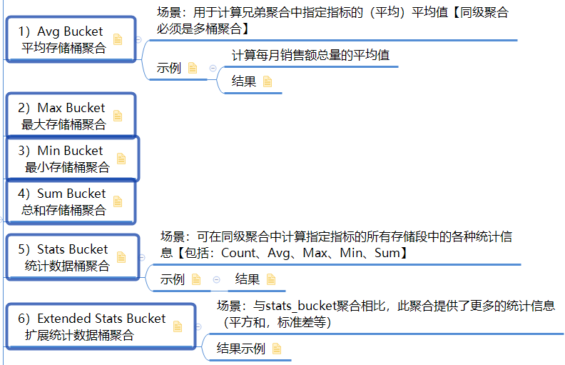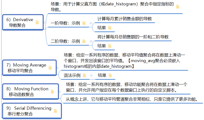 了解了buckets_path 的语法,接下来我们就详细学习管道聚合,在学习之前,我们要知道管道聚合根据输出结果的位置分为Parent【结果内嵌到现有的聚合分析结果中】 和 Sibling【结果和现有分析结果同级】 两类。