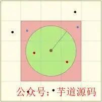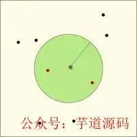 令左图的中心为搜索中心,绿色圆形区域为目标区域,所有点为待搜索的位置对象,红色点则为满足条件的位置对象。