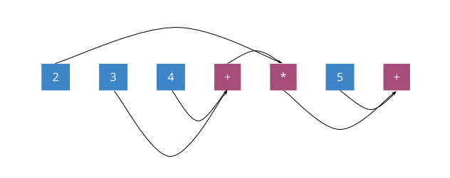 RPN:2 3 4 + * 5 +,这样我们无需括号就能无歧义地遍历这个表达式: