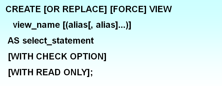 CREATE [OR REPLACE] SYNONYM [schema.]synonym_name FOR [schema.]object_name ;