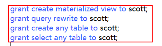 (1)授予权限,具备创建物化视图的权限、QUERY REWRITE的权限,以及对创建物化视图所涉及的表的访问权限和创建表的权限。