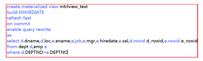ENABLE QUERY REWRITE:启动查询重写功能。在创建物化视图时明确说明启用查询重写功能。