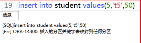 (4)如果向表中插入以下记录,会提示插入的分区关键字未映射到任何分区