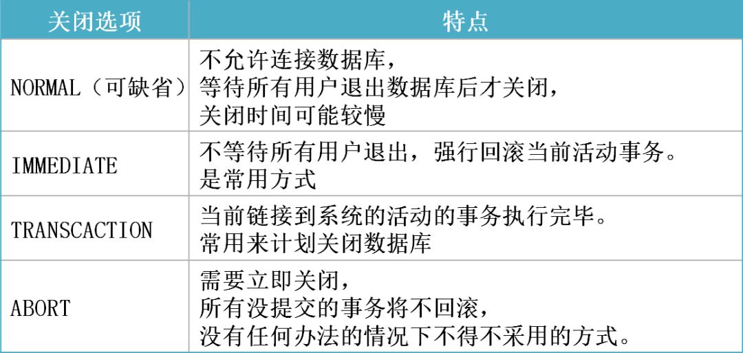 数据库关闭命令:SHUTDOWN 【启动选项】