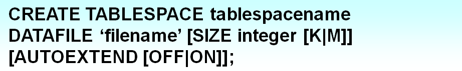 DATAFILE:指定组成表空间的一个或多个数据文件,当有多个数据文件时使用逗号分隔