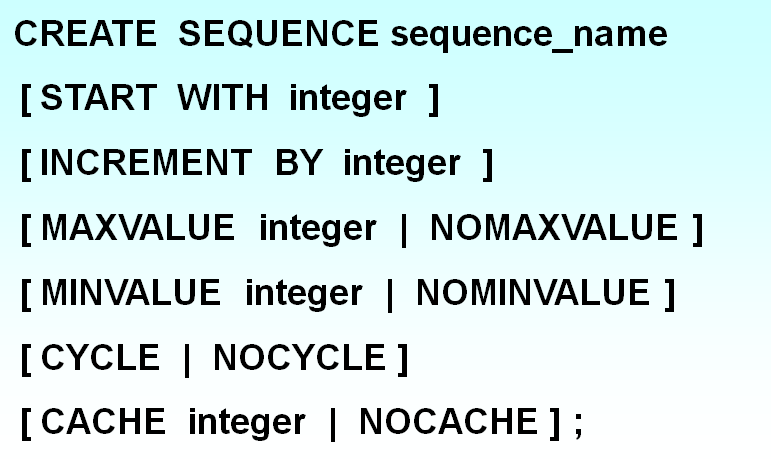INCREMENT BY:用于指定序列号之间的间隔,默认值为1,如果n为正值,则生成的序列将按升序排序,如果n为负值,则生成的序列按降序排列。