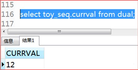 NETXVAL:创建序列后第一次使用NEXTVAL时,将返回该序列的初始值。以后再引用NETXVAL时,将使用INCREMENT BY子句的值来增加序列值,并返回这个新值。