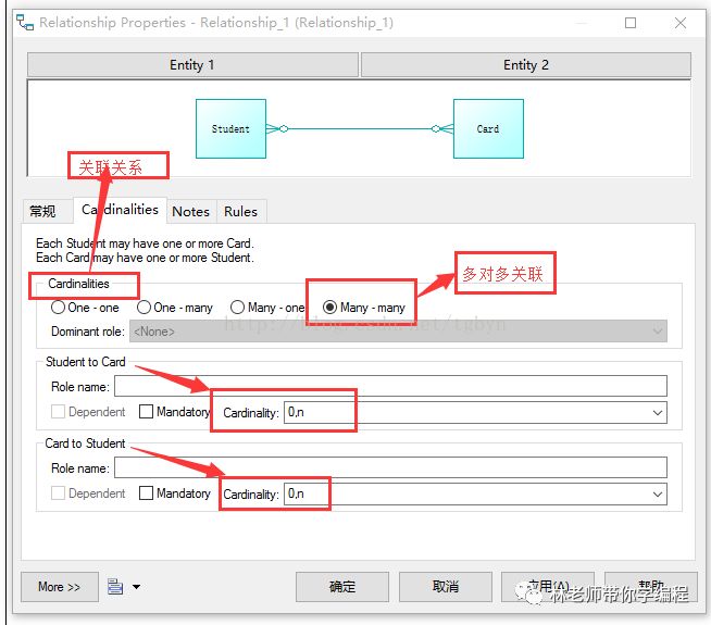 一共四种关系(1:1,1:n,n:1,n:n),根据自己需要建立关系